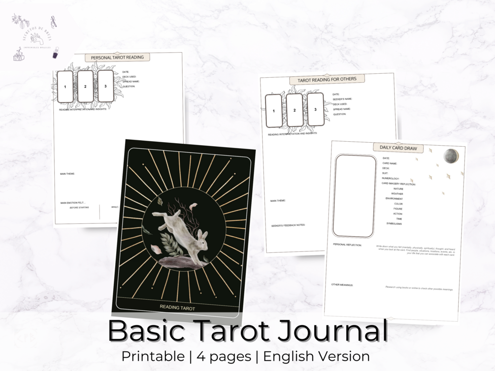 Tarot Journal Printable | Tarot Journal | Tarot Pages of Spreads | Daily Tarot | 3-card tarot | Tarot Journal Page